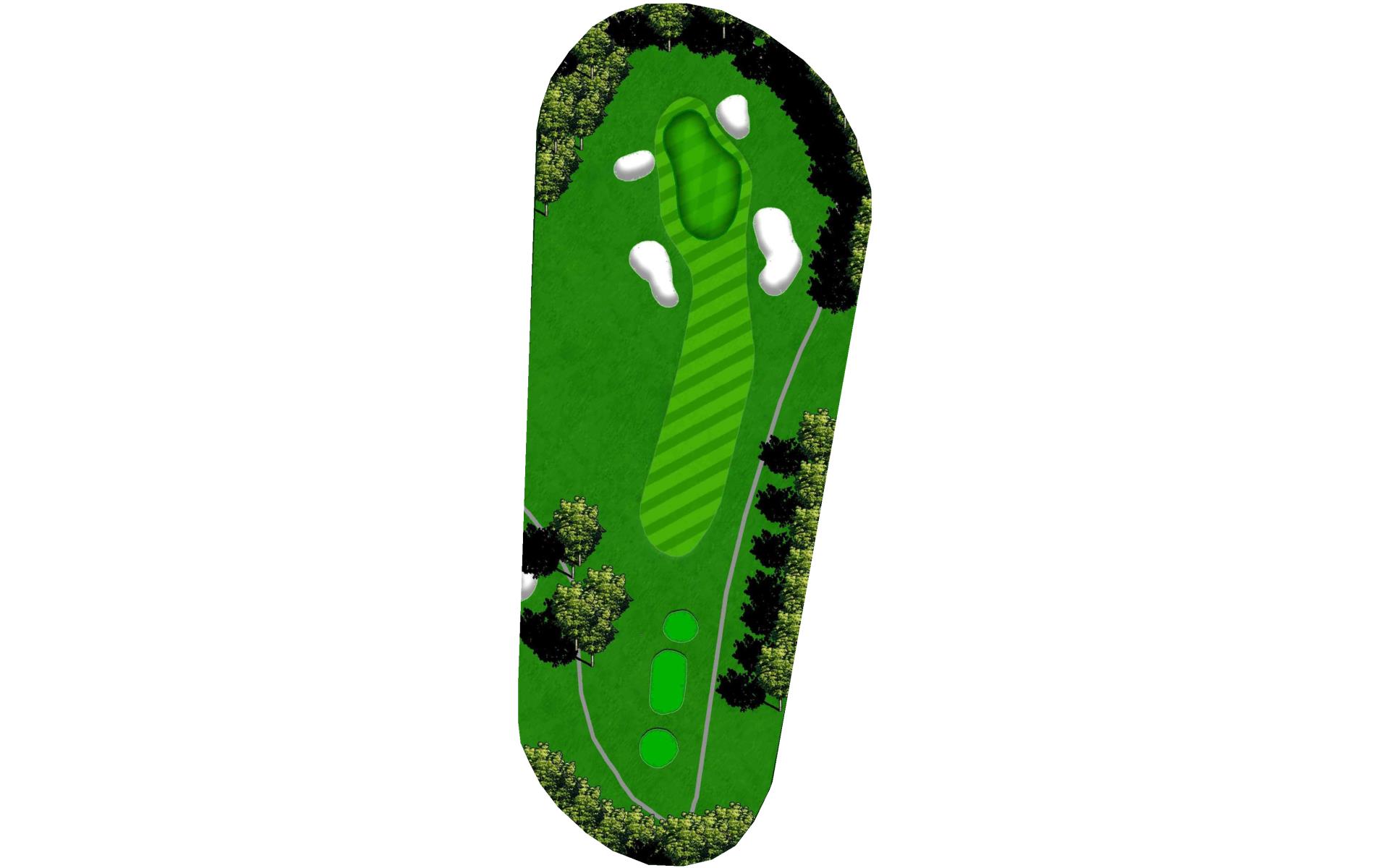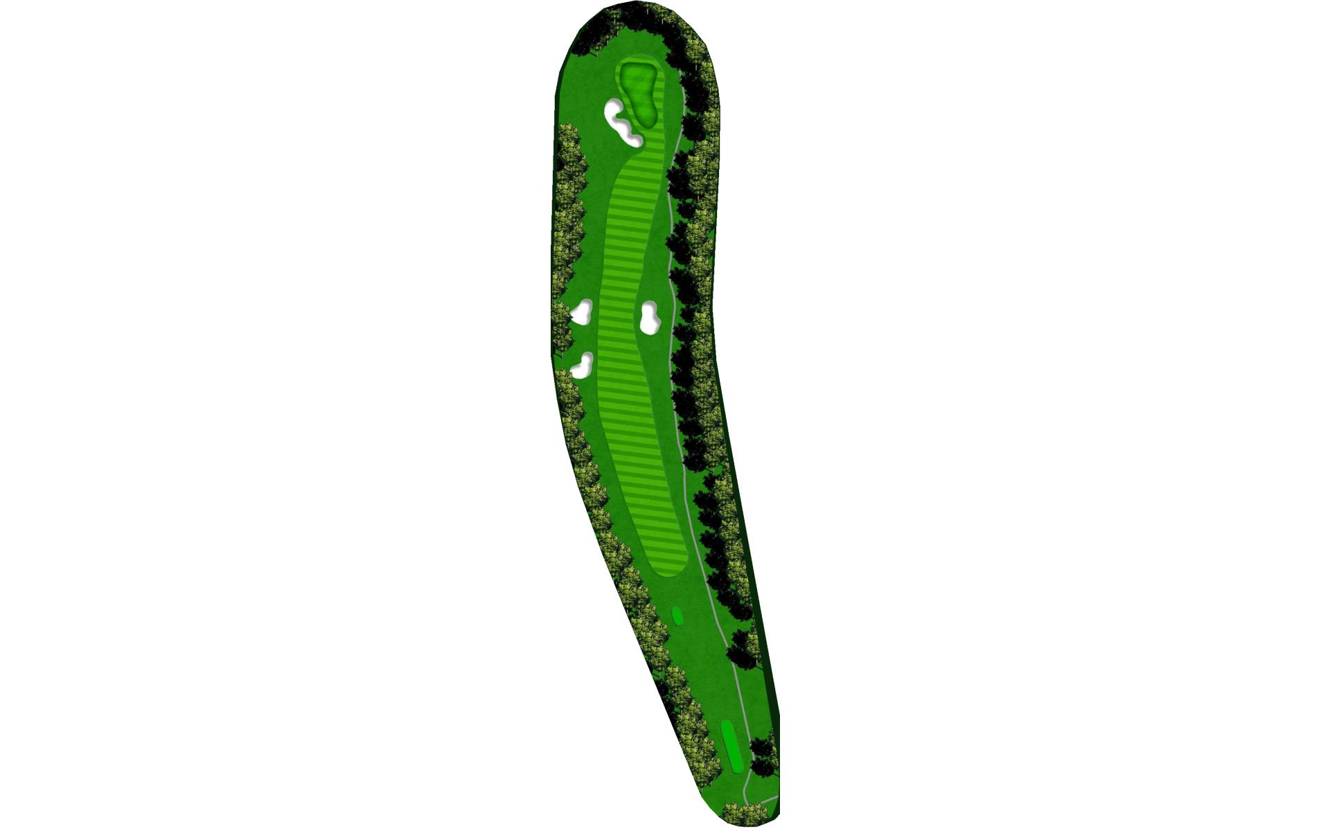Accuracy off the tee is crucial to avoid the fairway bunkers. The approach shot plays uphill, so hit enough club so you don’t leave it short in front of the bunker.