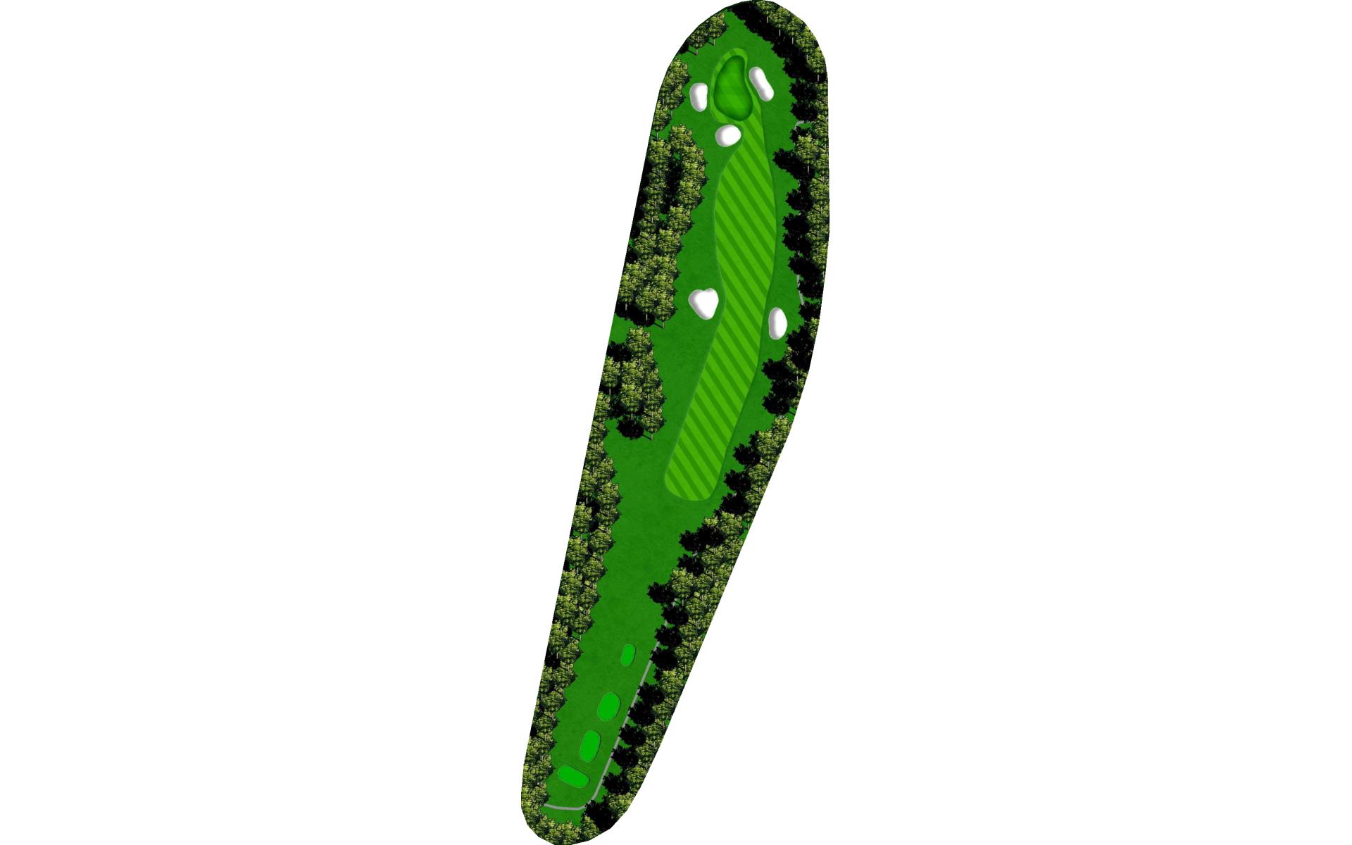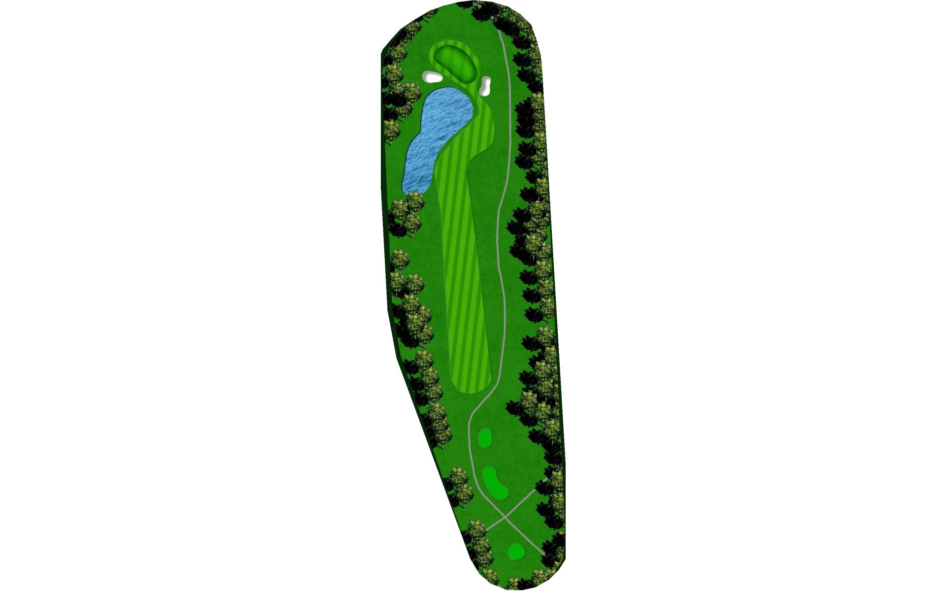 A short par 3 with a very tricky green and water short. You will want an uphill putt; beware of 3-putts and fast downhill putts.