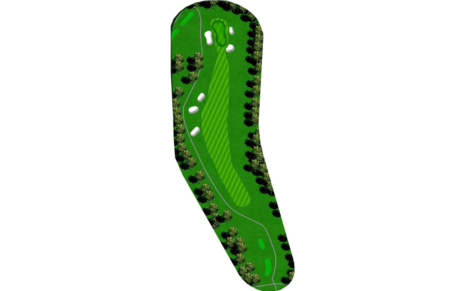 A dogleg left par 5 where a draw is the preferred ball flight on the tee shot. You will not want to miss your approach left of the green as a hill makes it a challenging up and down.