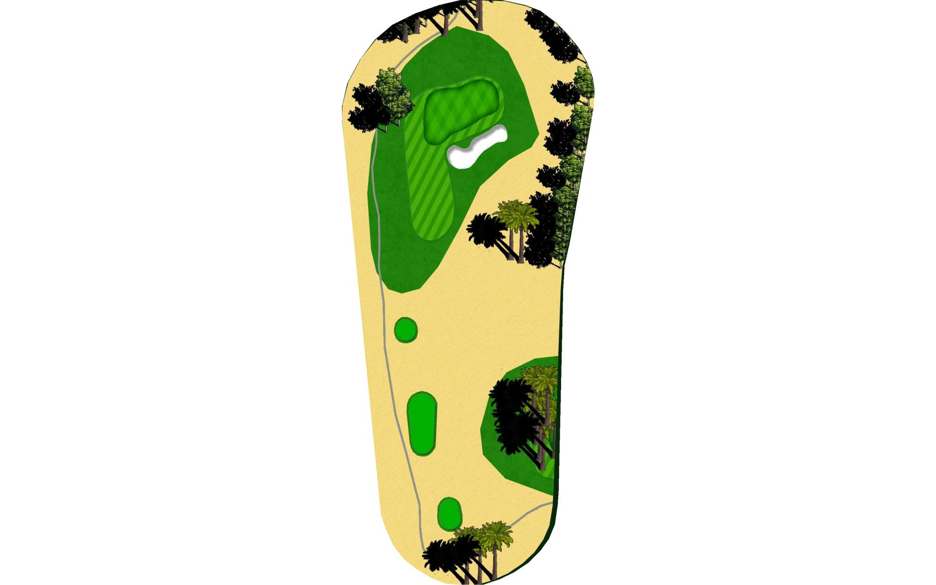 Short Par 4 that is straight away. Be careful as out of bounds runs along the entire left side of the hole and sneaks into play over the green. Fairway bunker on the right will give you approximately 160 yards into the green that is surrounded by bunkers short right and left, as well as long right. The green slopes back to front, and gets very narrow towards the back of the putting green. *Player Note: Middle of the green on approach shots to back pin placements is best.