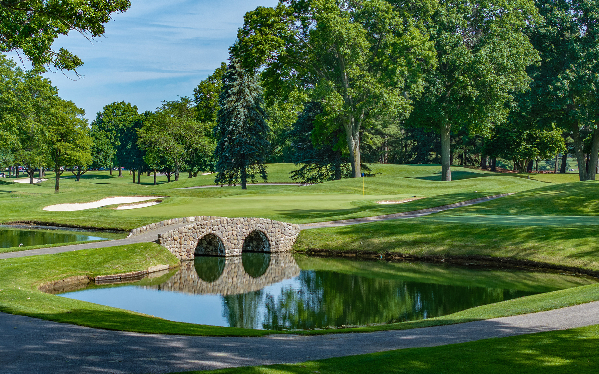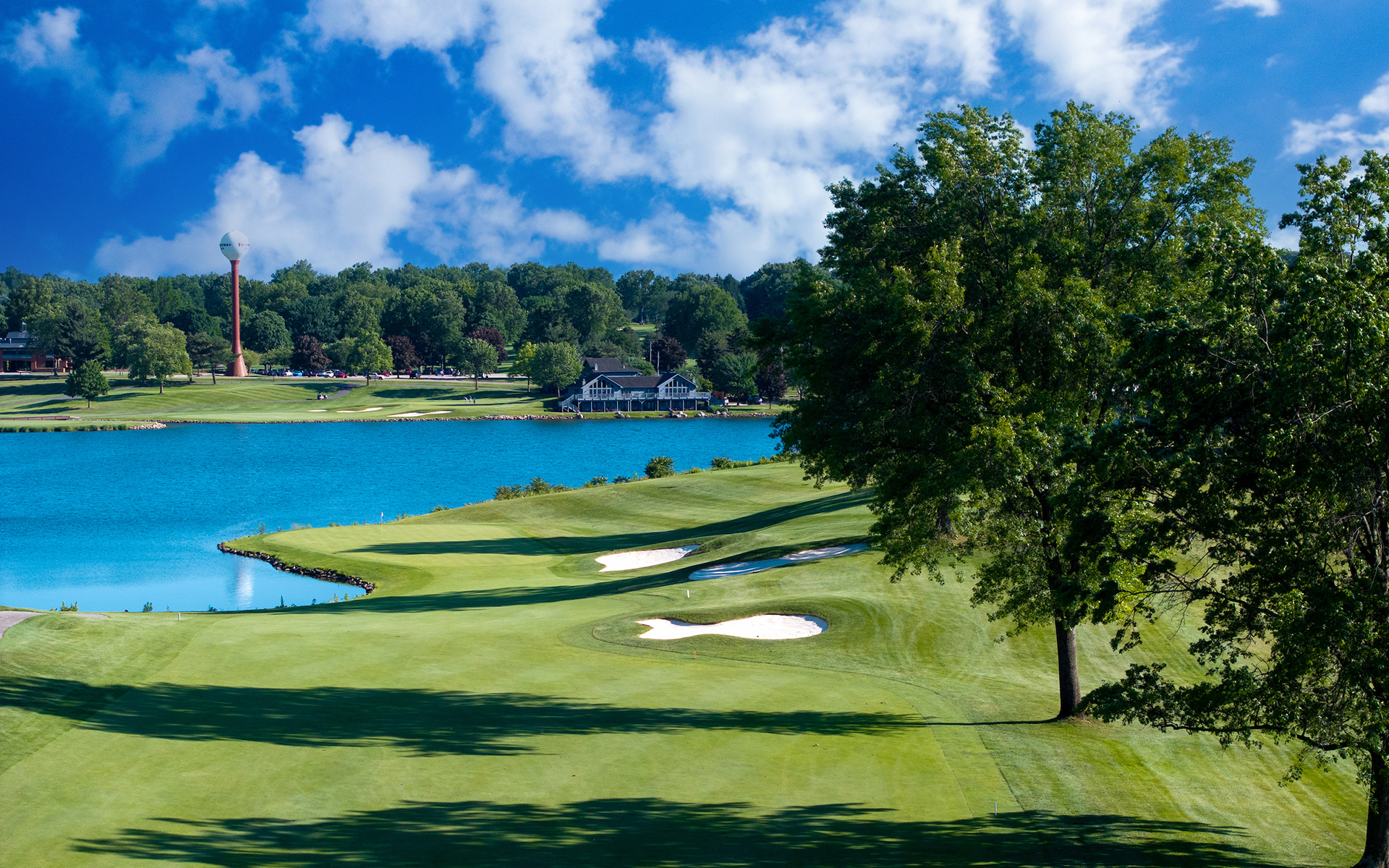 Formerly the West Course, the links-style, 18-hole Fazio Course features breathtaking views of the lush, rolling Firestone landscape. Redesigned by Tom Fazio Architects in 2021, the Fazio Course winds around the famed South Course and is home to the annual Ohio Senior Open.