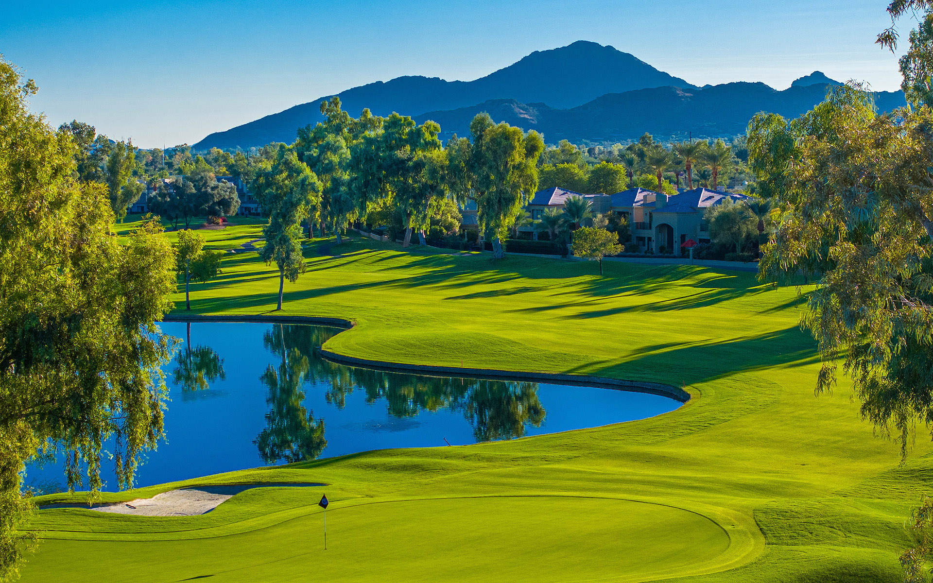 With it's lush greenery, sparkling waterways and spectacular waterfall at the ninth hole, The Lakes Course is both a challenging Scottsdale golf course and a delightful one.