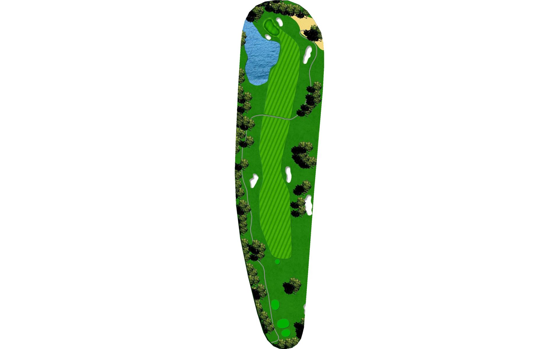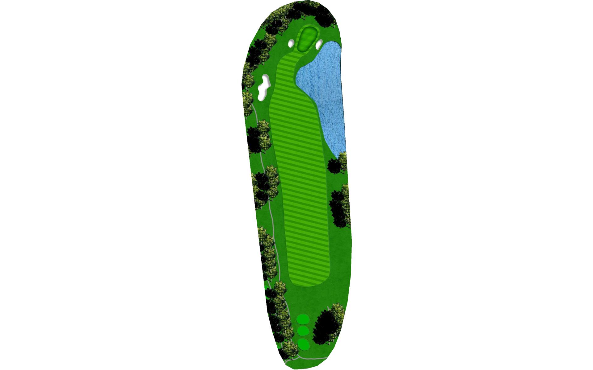 Enjoyable par five with plenty of room in the fairway - water threatens, but you have choices you may decide to go for it, or lay up to about 50 yards with a wide approach landing area.