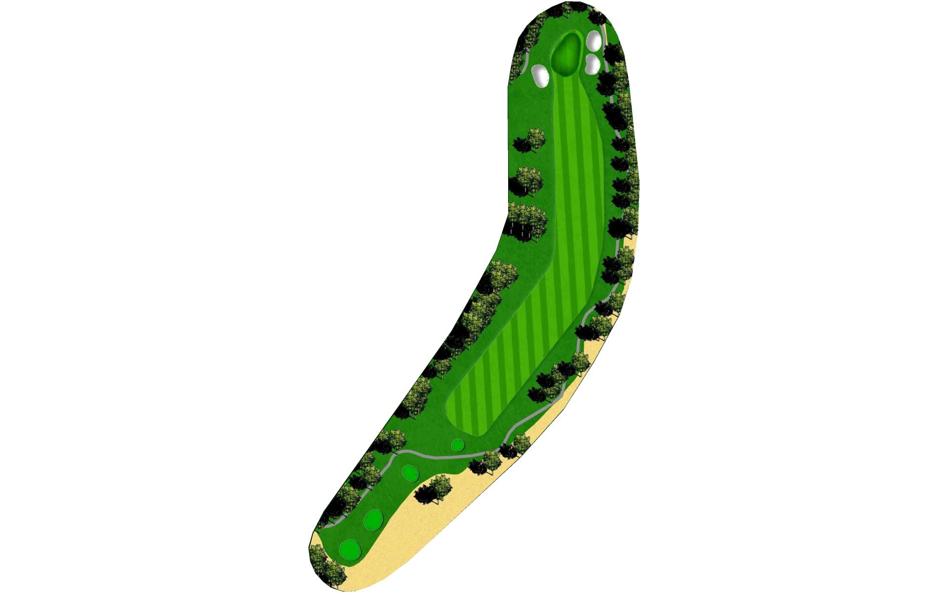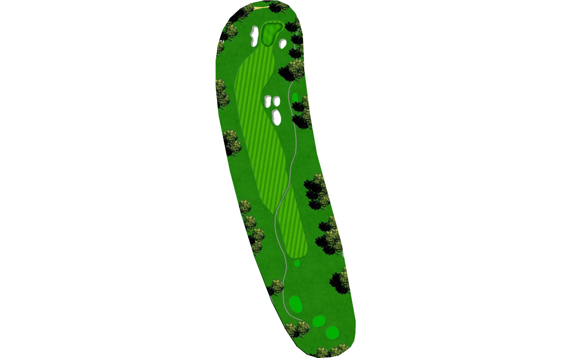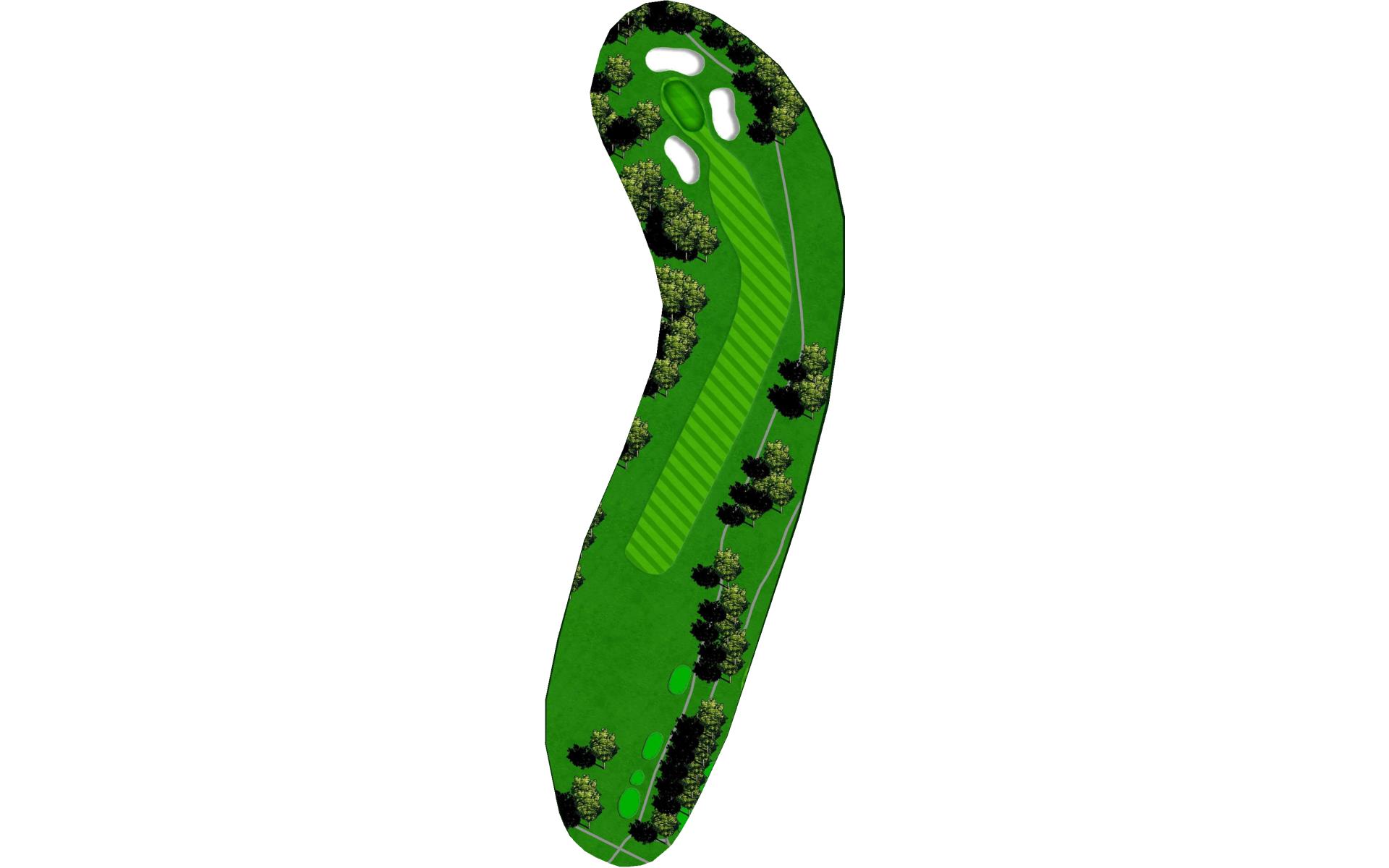 Dog-leg left risk reward - cut the corner and o.b. is in play. Get your second shot on the green as par is a solid score on this hole.