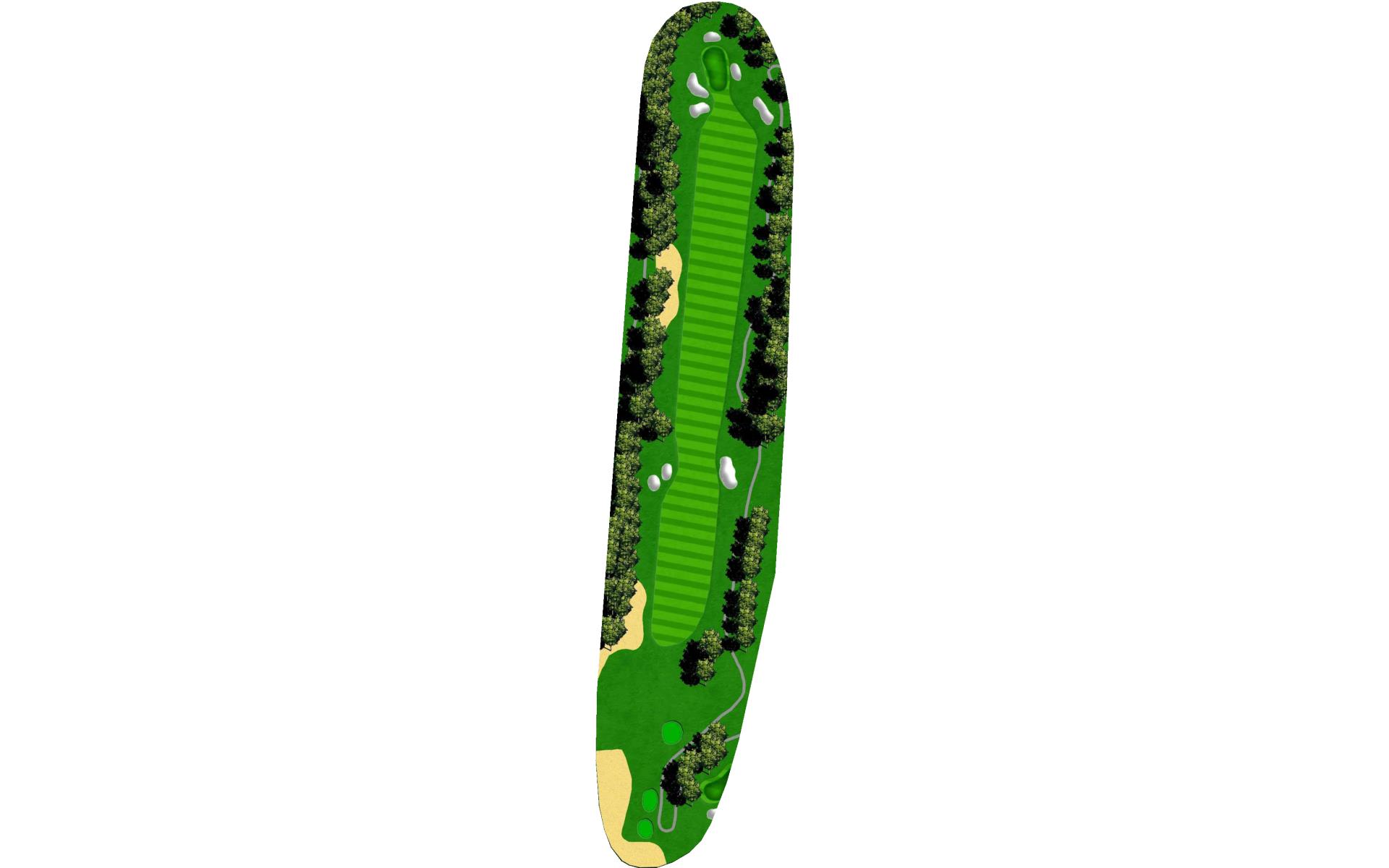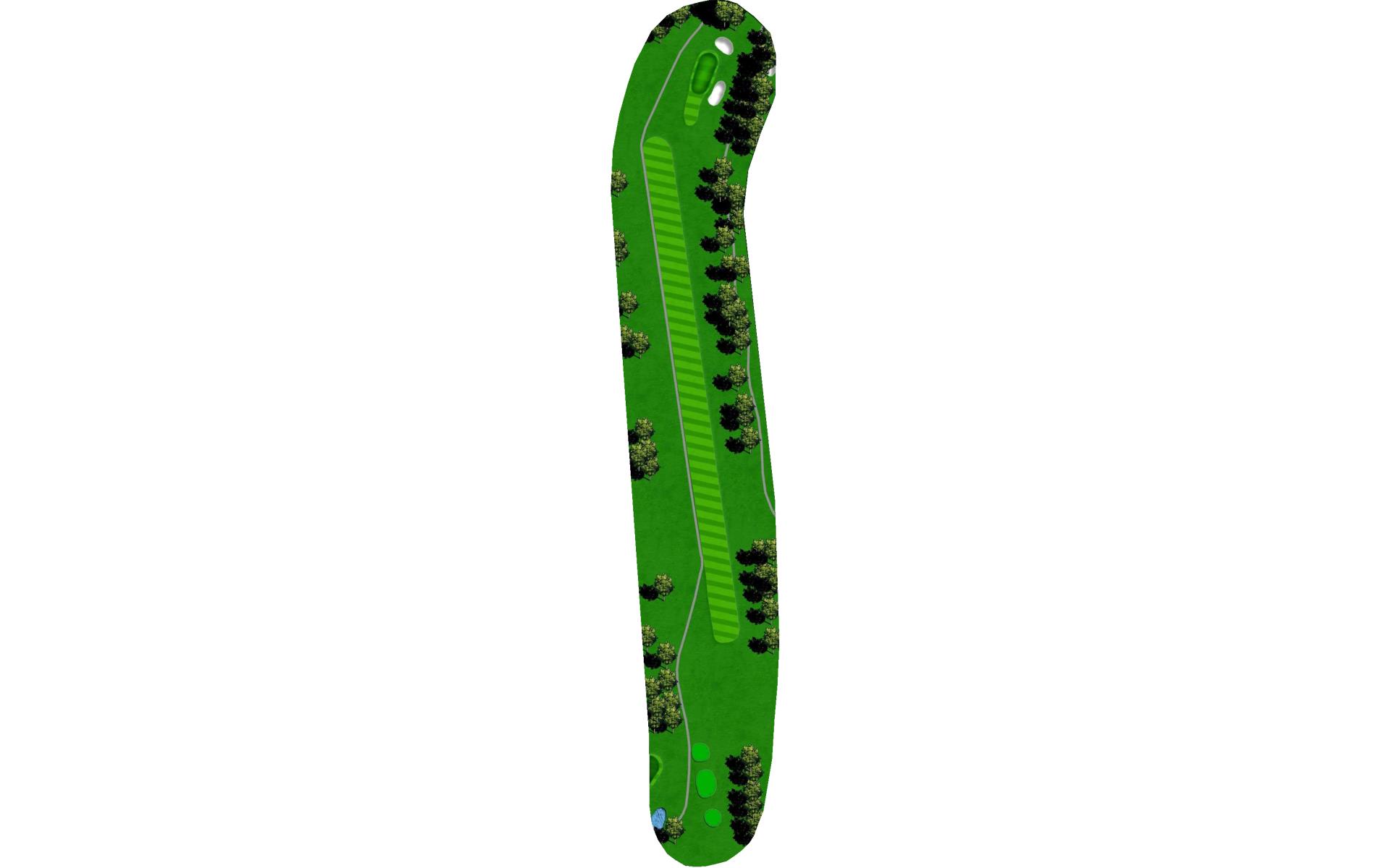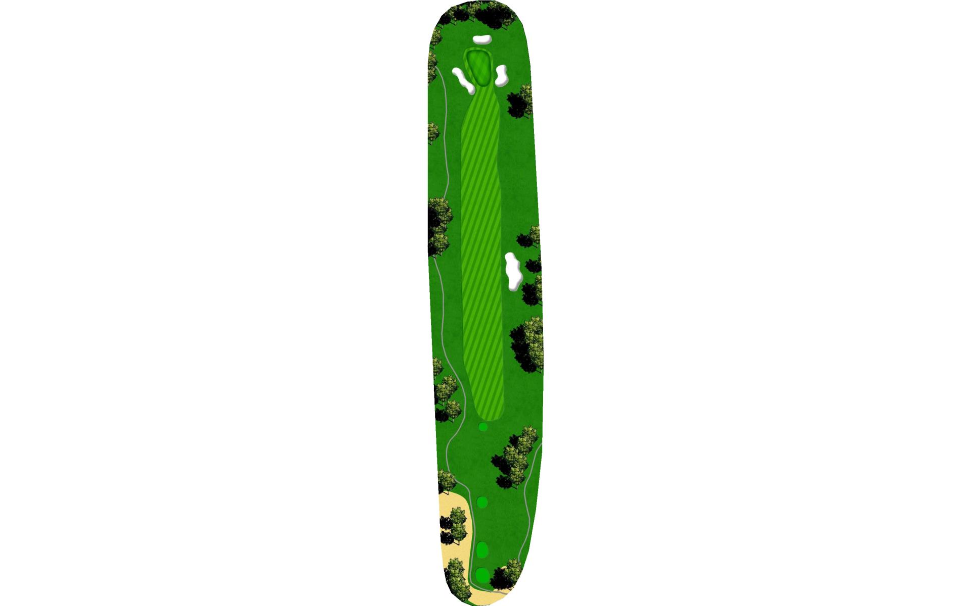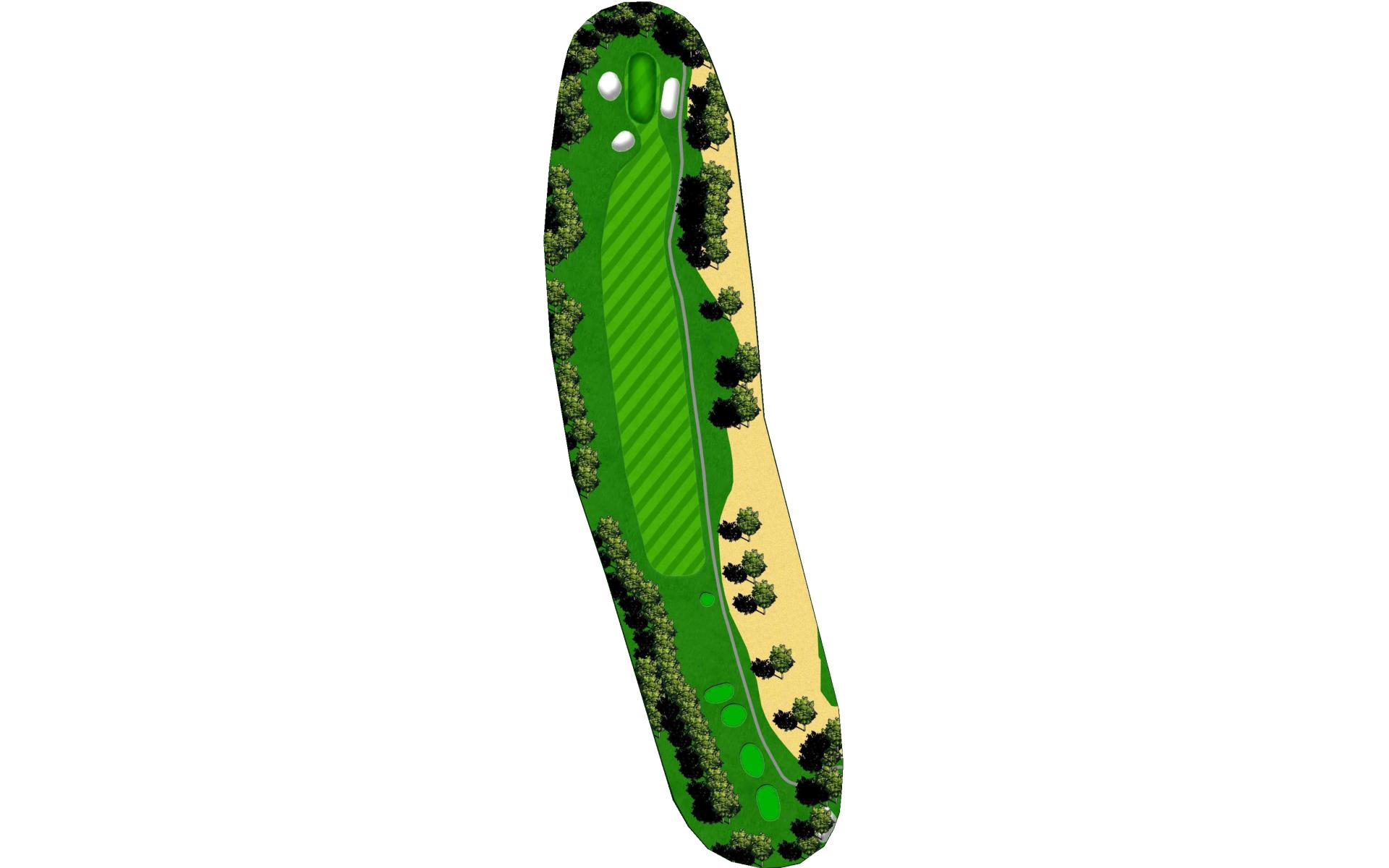 A relatively downhill short par 4. A bunker to the left of a wide fairway comes into play. Avoid the bunker and you will be rewarded with a short approach to a failry level green.