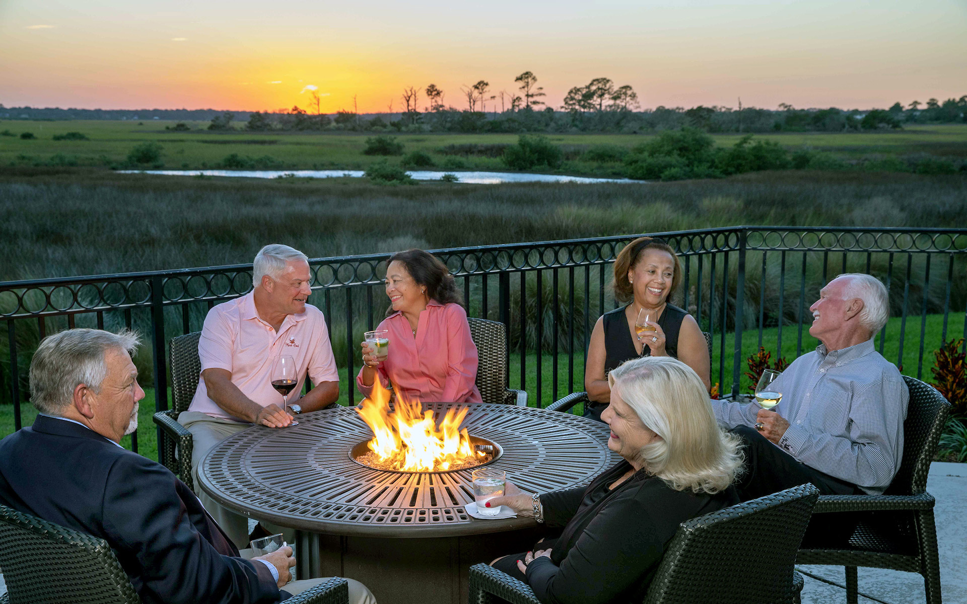 Our Marsh Creek Clubhouse is the center of social activities at the Club. Our Dining Room faces west toward the Intracoastal and features spectacular sunset views over the marsh.