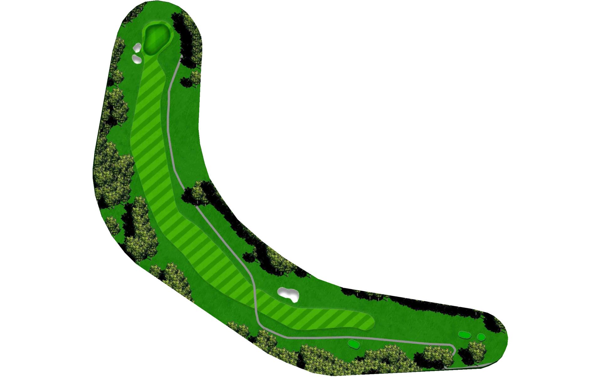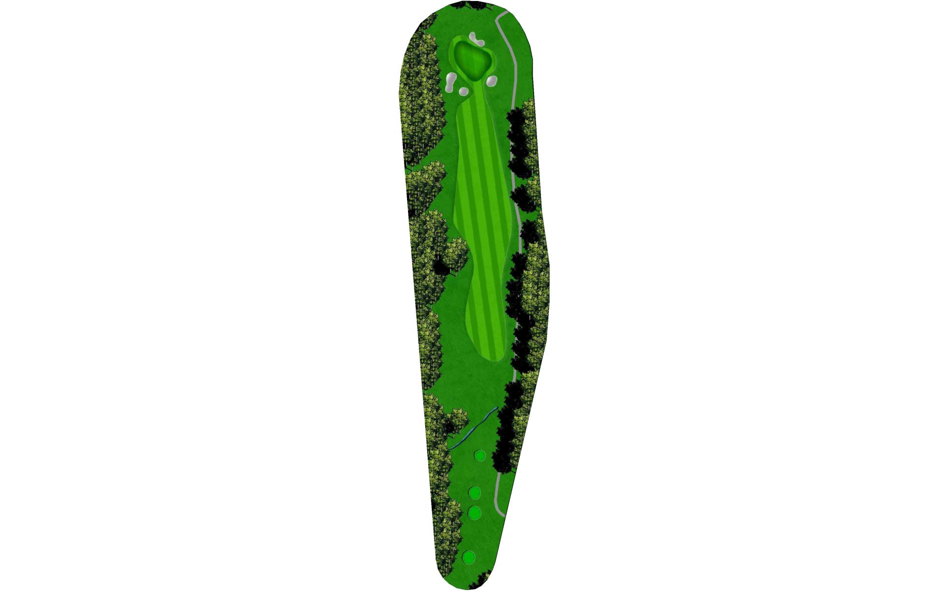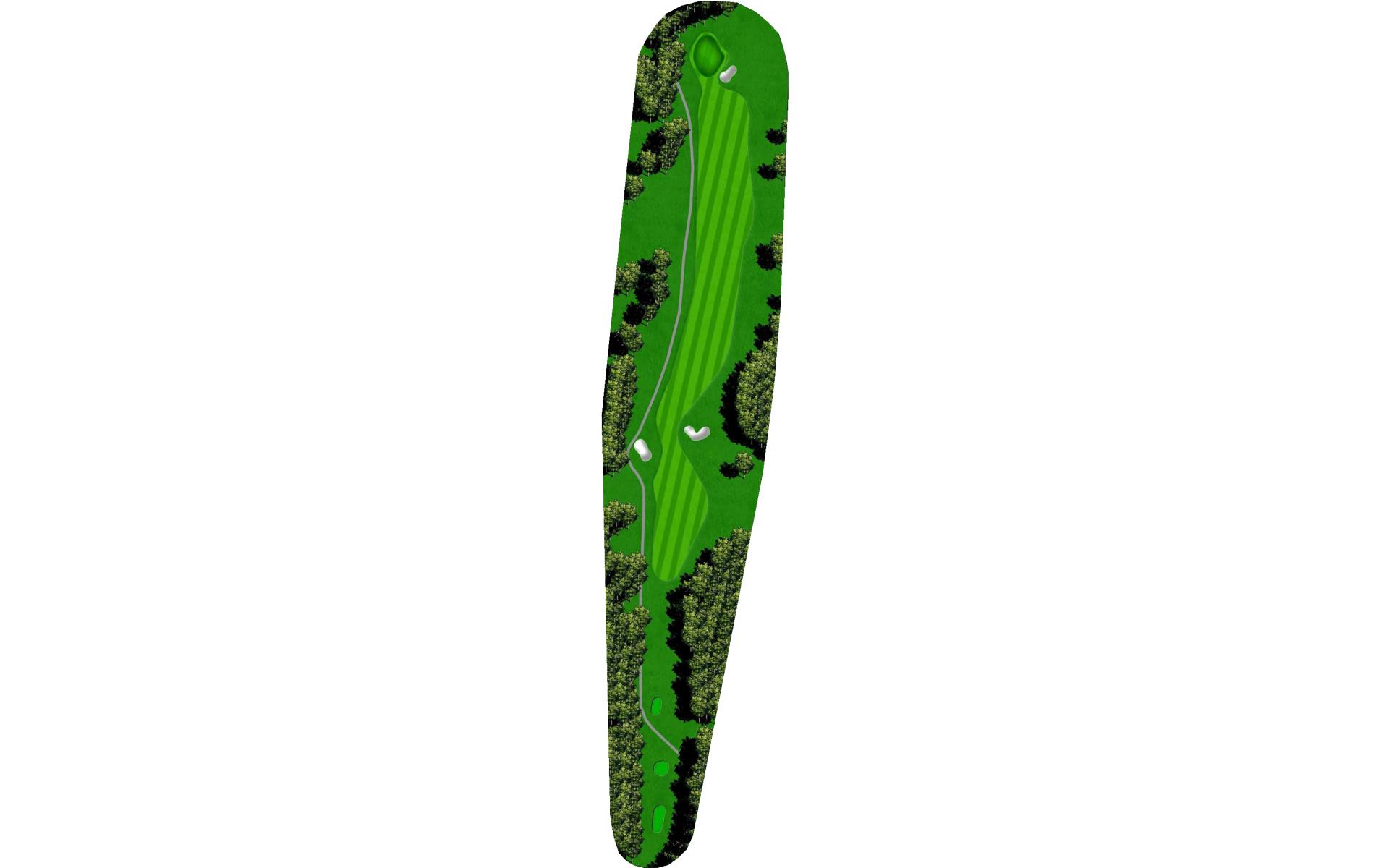 A long straight forward par 4. The hardest thing on this hole is to hit enough club on the approach. The uphill approach requires almost 1 ½ clubs more. The green slopes from back right to front left more severely than you may first think.